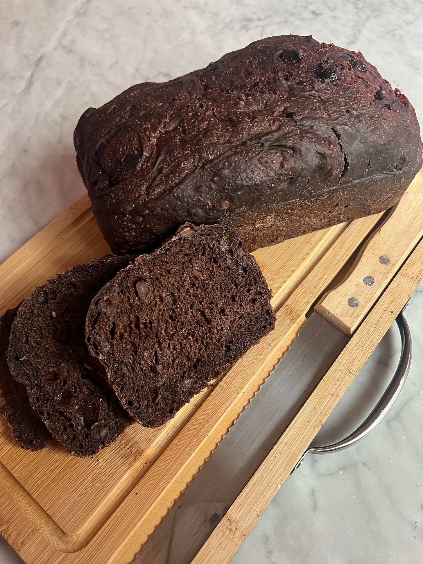 A simple chocolate bread enriched with chocolate chips and just a bit of sourdough tang
